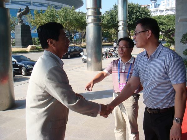 晋江市副市长丁峰与省足协常务副主席兼秘书长蔡向阳亲切交流